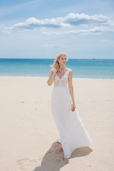 "Amera Vera Light" Brautkleider - Schlichtheit in ihrer schönsten Form. Diese Kollektion verkörpert subtile Eleganz und Minimalismus für moderne Bräute. Jedes Kleid zeichnet sich durch klare Linien und dezente Silhouetten aus, die in Kombination mit hochwertigen Stoffen zeitlose Schönheit schaffen.